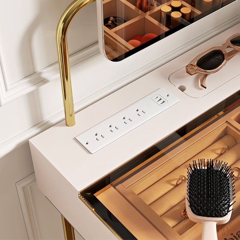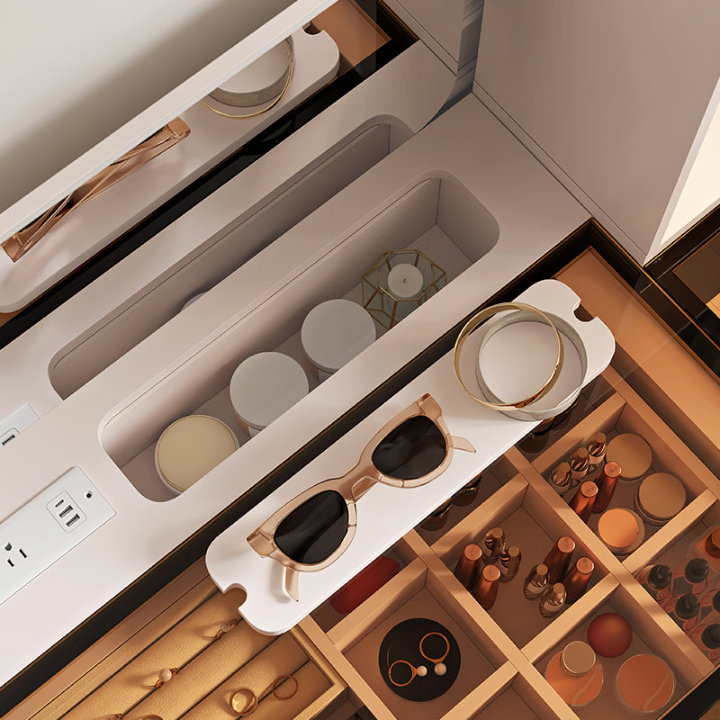 With its modern beige color, smart design, and plenty of space, this vanity table is a perfect mix of beauty and function for any bedroom.