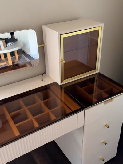 The Cassandra Luxury Beige Vanity Table is made to bring both style and comfort to your daily routine. It’s not just a table — it’s a full beauty station!