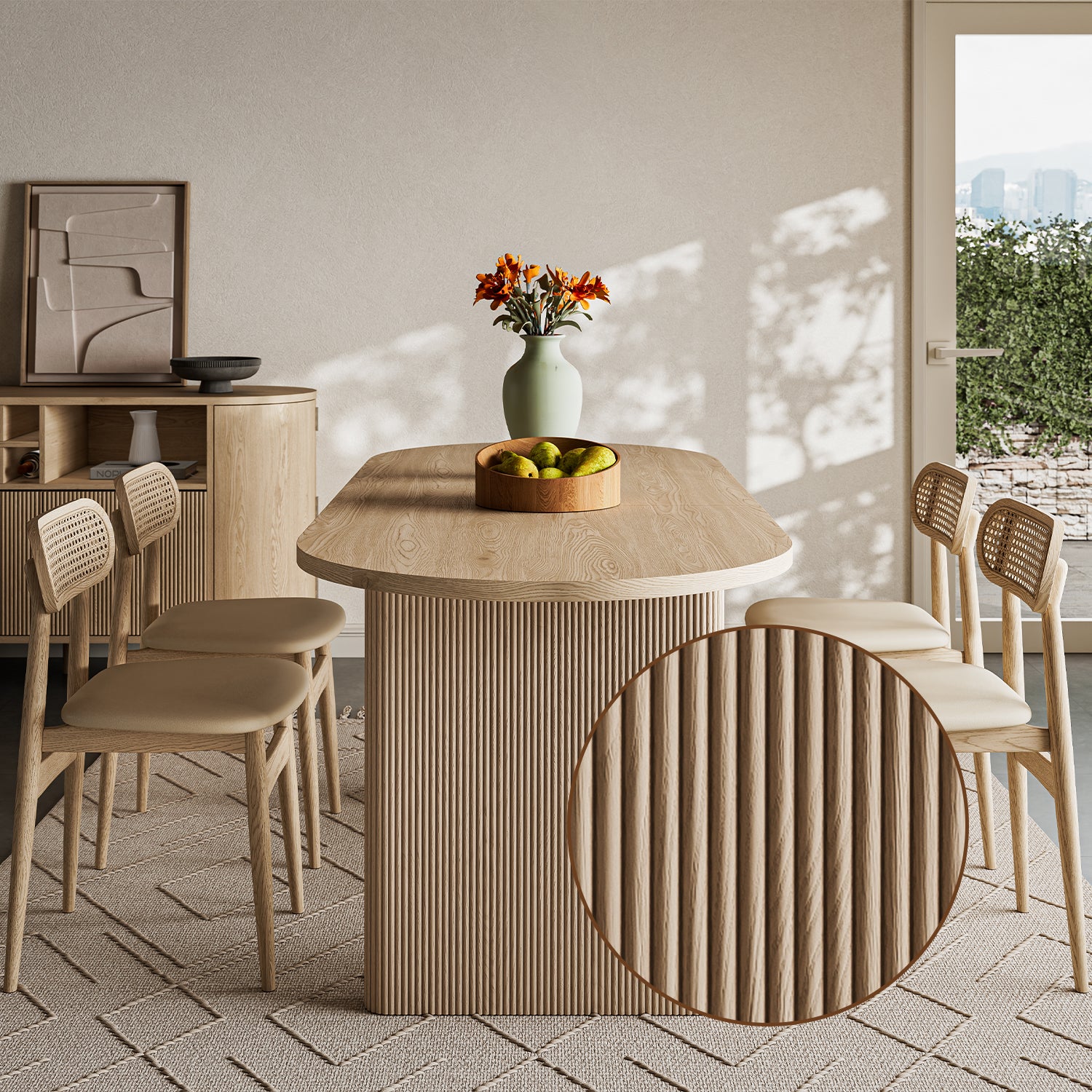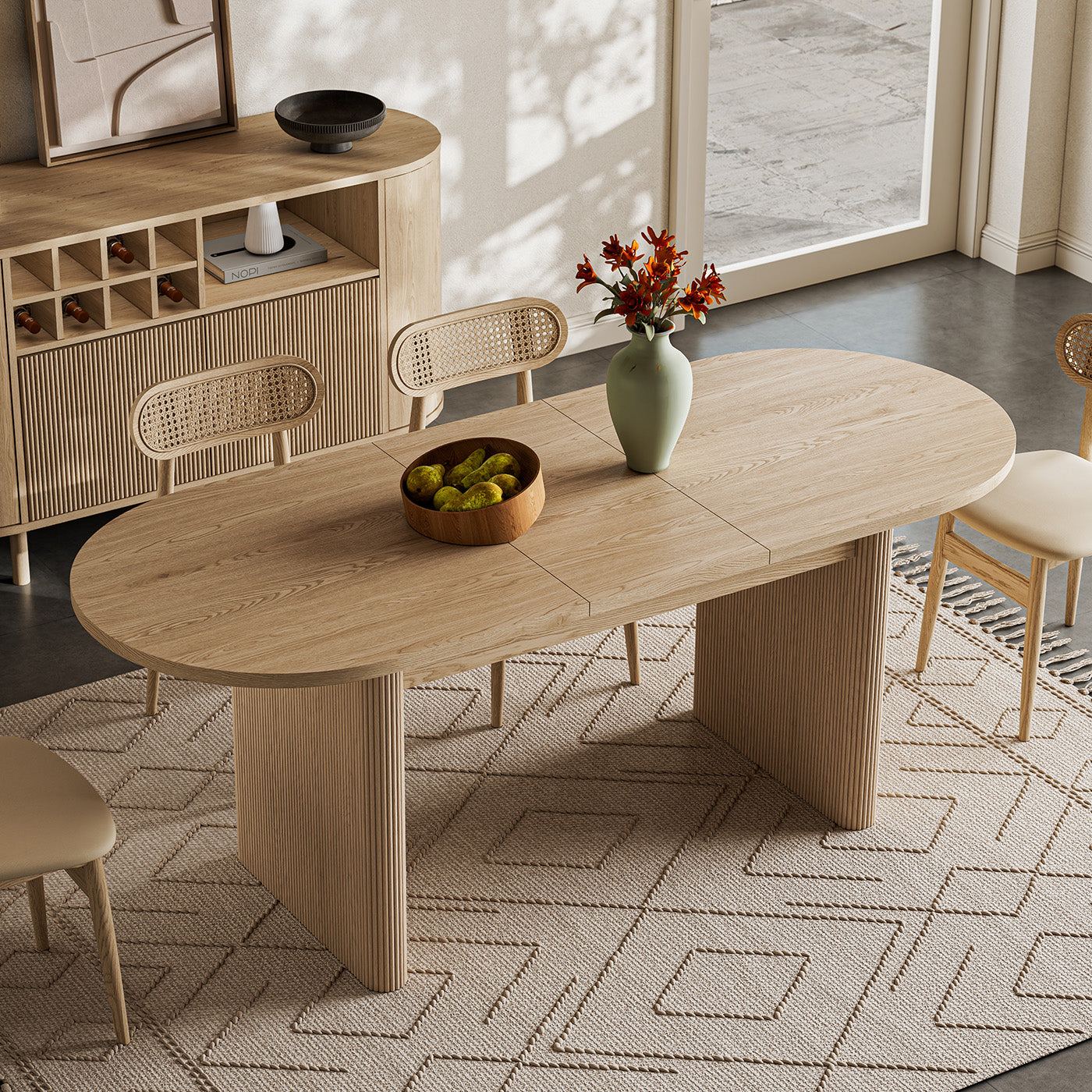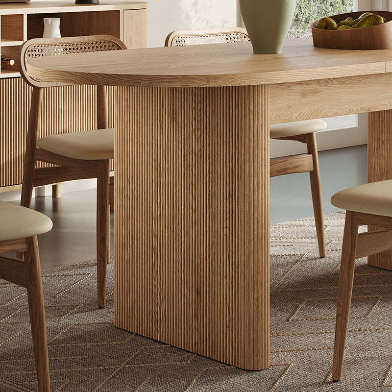 The Todd Japandi Oval Dining Table is built to be both stylish and useful. On regular days, it’s 63 inches long and easy to fit into most dining rooms or apartments. When you have friends or family over, you can pull out the hidden extension panel and make it 78.7 inches long — enough for 4 to 6 people.